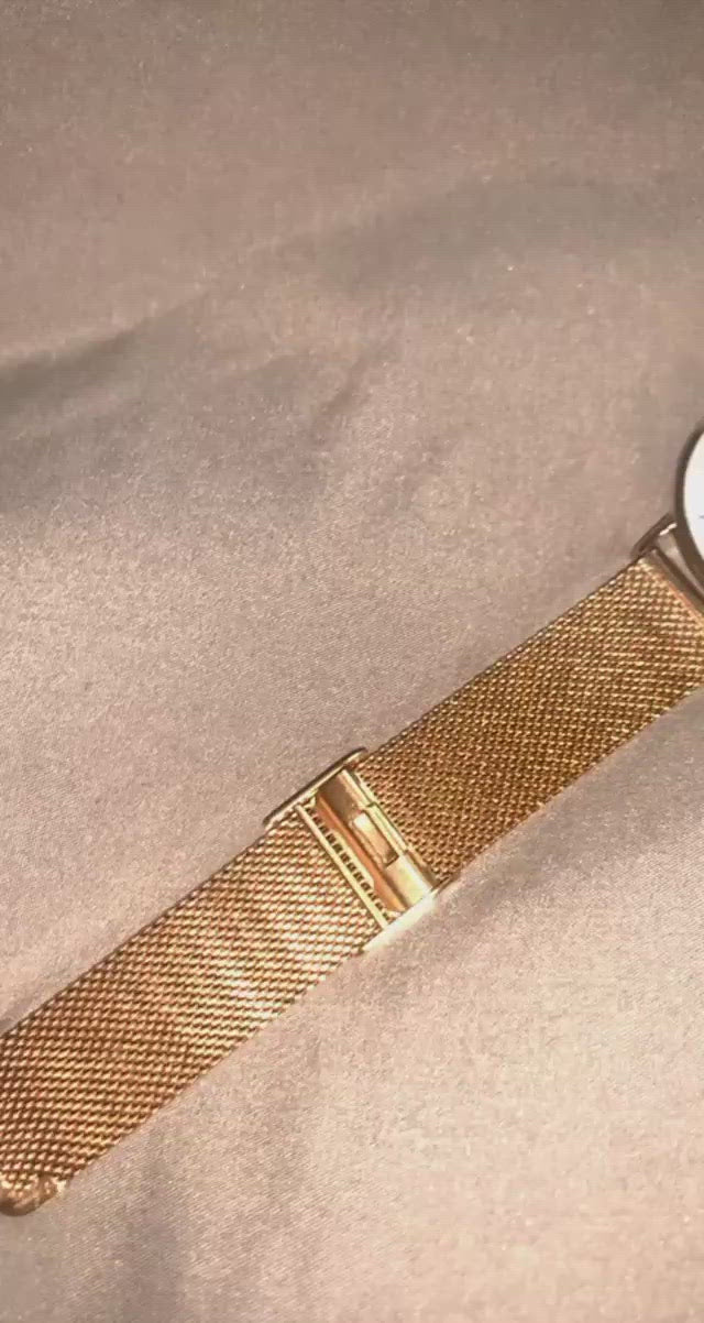 The Aria watch with a mesh band is not only comfortable on the wrist, but also versatile to pair with other jewelry. It channels a look that’s sleek and cool, thanks to its smooth exterior surface of ultra-small links. You can layer it with any number of gold chain bracelets and bangles, or our Personalized Jewellery.